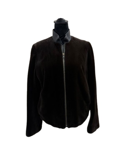 Sheared Mink Jacket with Leather Standup Collar Zipper Front Open Sleeves