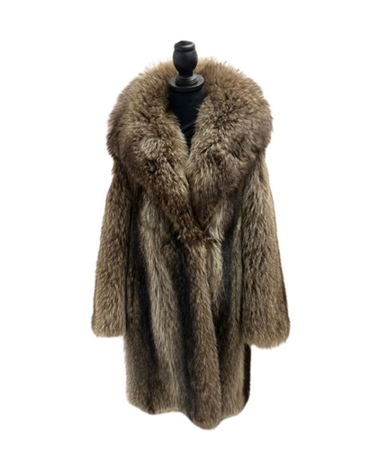 Raccoon Coat for Extreme Cold Weather, Shawl Collar, Open Sleeves