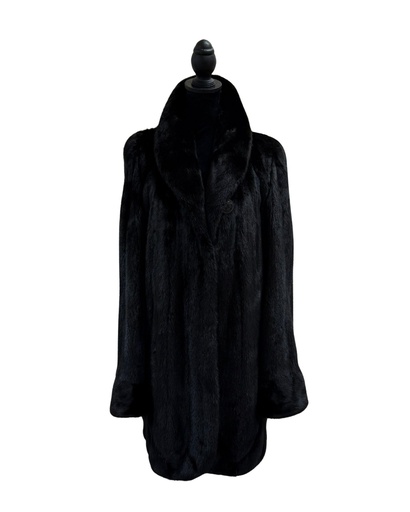 Full Length Black Glama Mink Female Skins Coat with Shawl Collar & Straight Sleeves