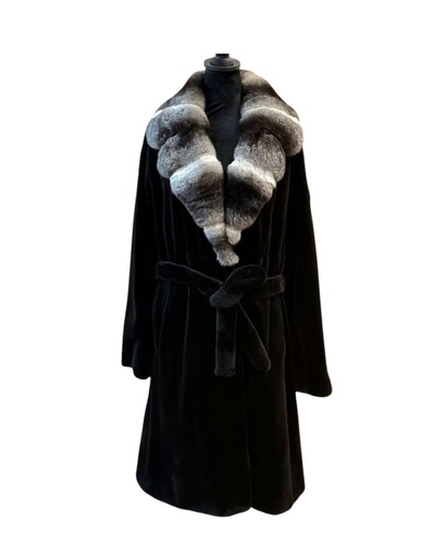 Sheared Mink Stroller with Chinchilla Notch Collar